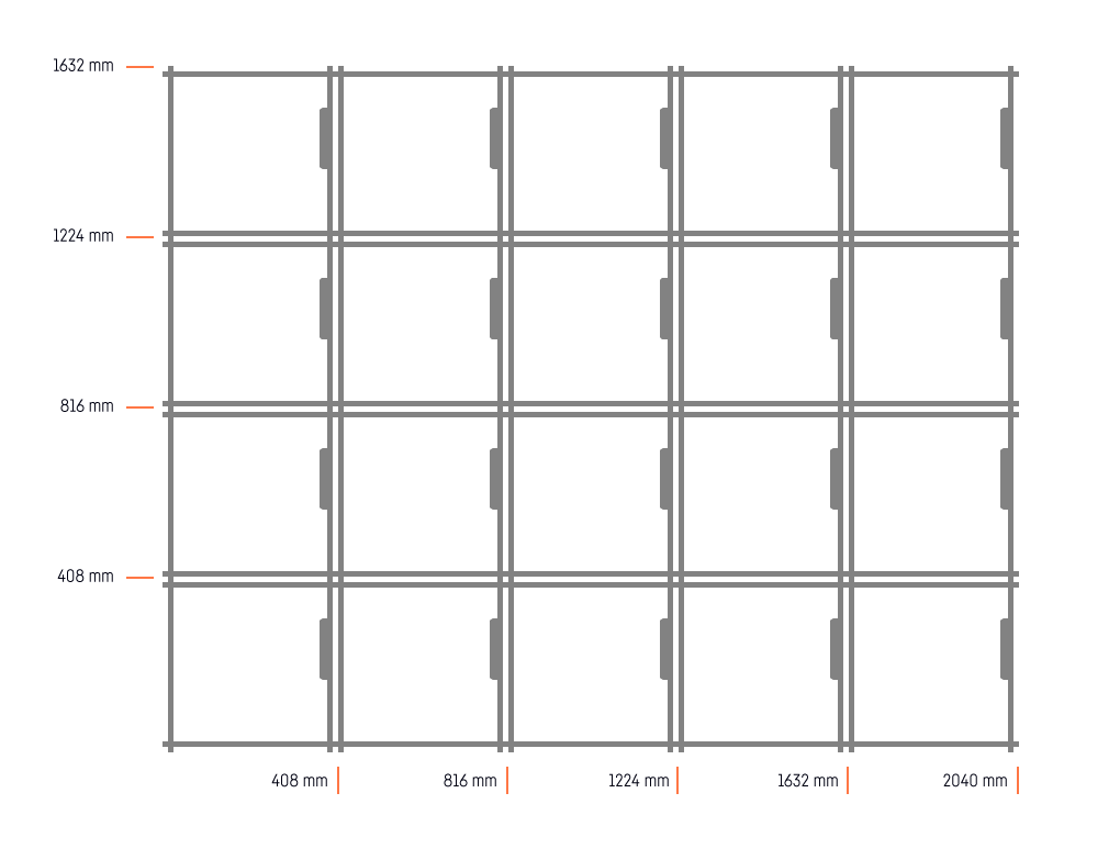 Die Innenmaße von Part #101 sind auf Aktenordner abgestimmt und betragen B 360 mm x H 360 mm x T 330 mm. Die Außenmaße eines Kubus betragen B 408 mm x H 408 mm x T 360 mm.