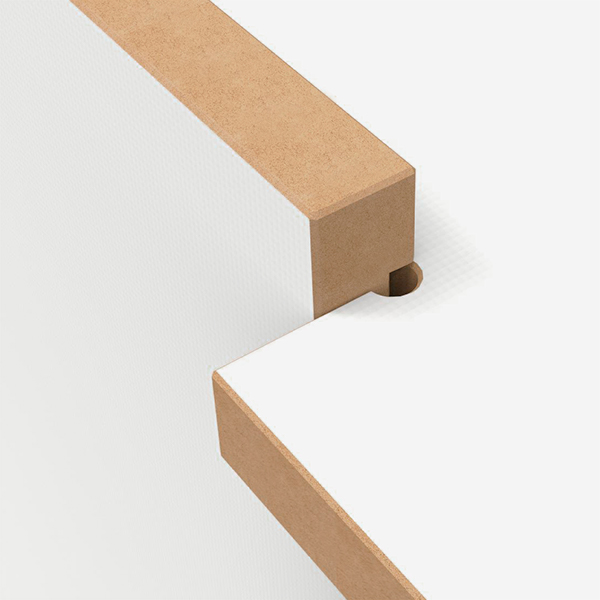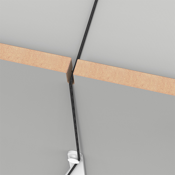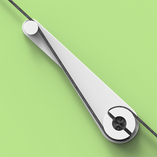 Die Seitenteile sind wahlweise in MDF oder Multiplex ausgeführt und in verschiedenen Farben HPL beschichtet. Das umlaufende Seil ist eine extrem dehnungsarme Trimmleine aus dem Bootsbereich, die durch einen 3D-gedruckten Spanner gehalten wird.